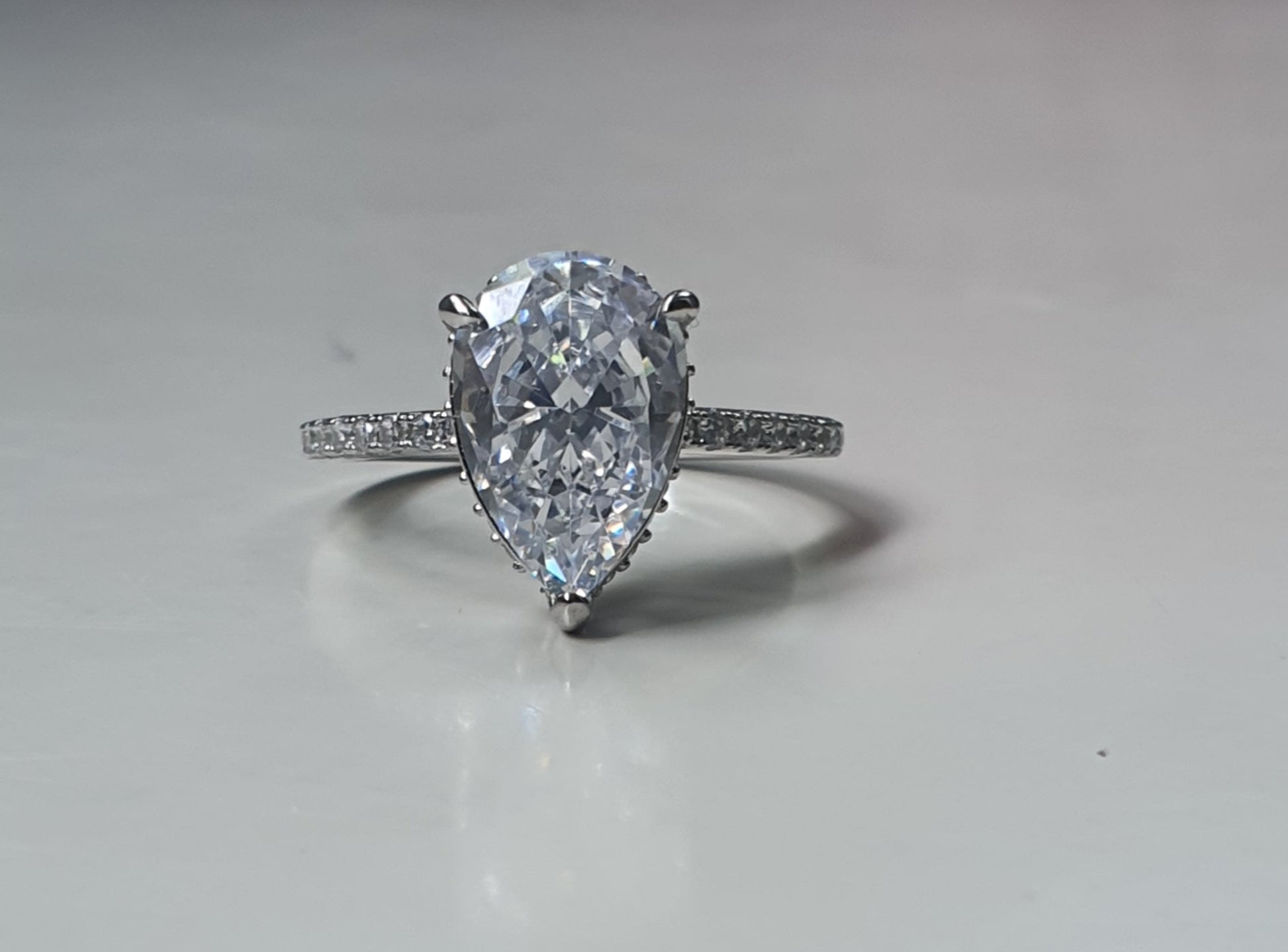 our highest-grade CZ stone, cut for maximum sparkle and clarity. It mimics the look of a diamond with stunning fire and brilliance.